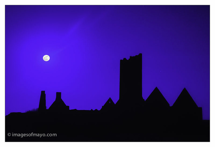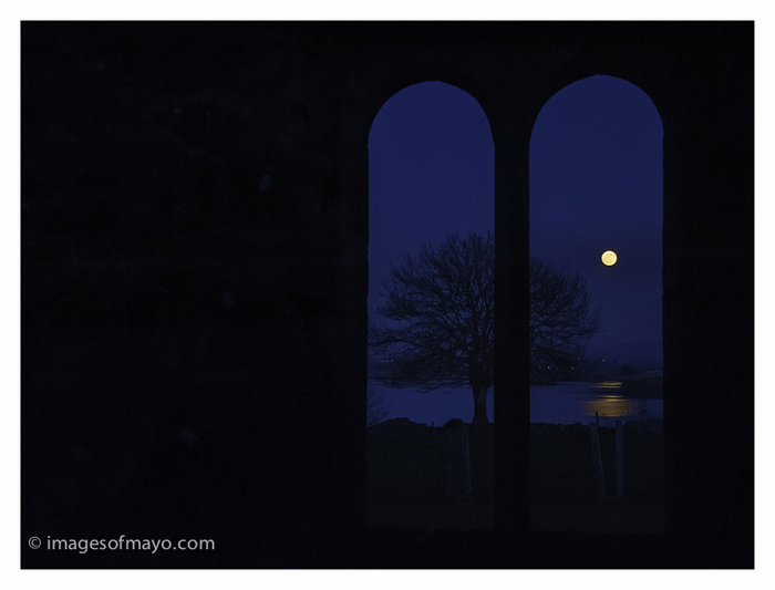 This evening I went to Moyne Abbey near Killala. I arrived shortly after sunset, shortly after I arrived the moon rose over Killala Bay, I took several pictures before going into the Abbey and finding this view through the abbey window. By this time it was very dark and the moon was very bright which made it difficult to photograph both the window and the moon, but I still thought it was worth a try because this is the same moon that the Franciscan monks would have looked out on back in the 1400s!