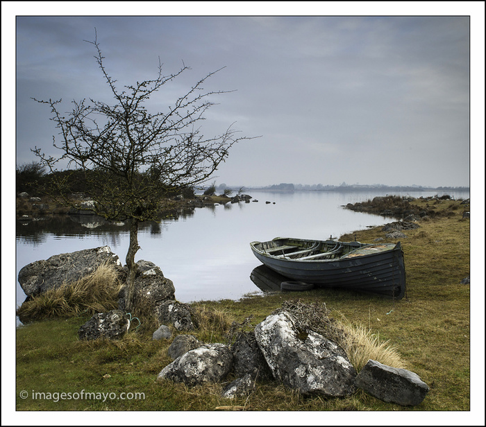 The grey weather continues, with little or no sign of the sun. I decided to visit Lough Conn were I thought there would be some boats I could photograph. I got to Lough Conn and there was only one boat on the lough, and the owner, Gerry Murphy, had only put it there ten minutes earlier! The boats are taken off for the winter , but I expected that some would have been returned by now. Gerry assured me that they will start to re appear over the next couple of weeks.