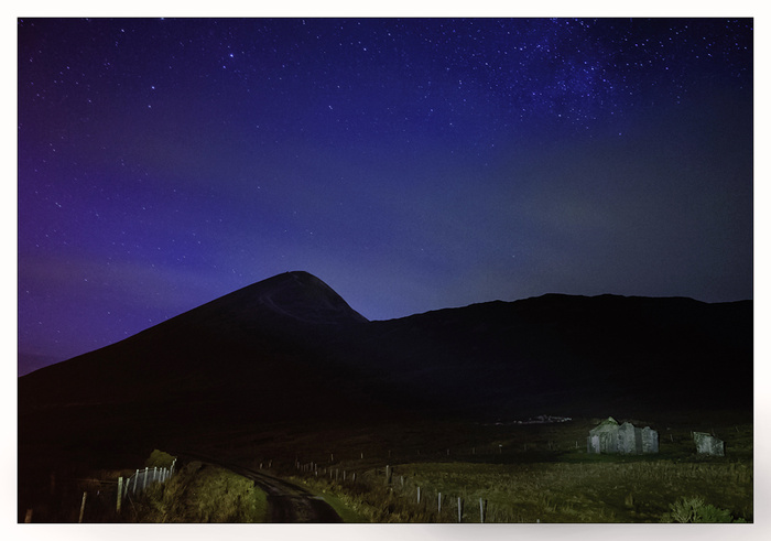 This picture was taken a couple of weeks ago, and is from the "back" of Croagh Patrick, the little building is actually the ruin of a National (primary Level) school. Taken after dark, my shining torches at the building drew the attention of the local farmer , who I think ,despite our conversation about what I was doing, probably took the view that I was just a little strange!