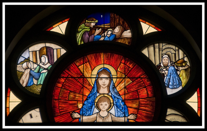 This picture of the Christmas story is from the windows in the back of the church at Befeenaun County Mayo.