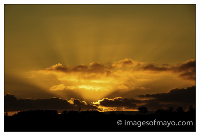 Most of the images I post here are planned. By that I mean have gone somewhere to view the sunrise or sunset and will know where and at what time it will be and will have thought about the foreground interest etc. But this picture was taken a couple of evenings ago from the side of the road in Kiltimagh. The weather had been bad all day and I decided not to bother going out as there would not be a decent sunset. I went up town on an errand and saw this! I did not have time to get to a suitable location so just enjoyed it from where I was!