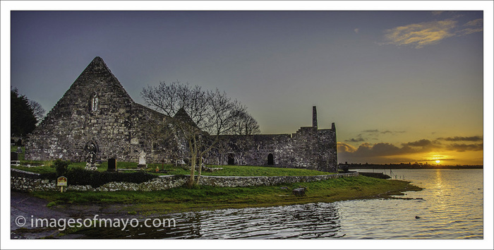 This morning I took a trip to Urlaur Abbey for the sunrise. It is very difficult to get a good view of the Abbey because of its position on the lakeside, this picture is taken from a small pier. The rising sun can only be seen from this position for about two months of the year, otherwise it is behind the Abbey.