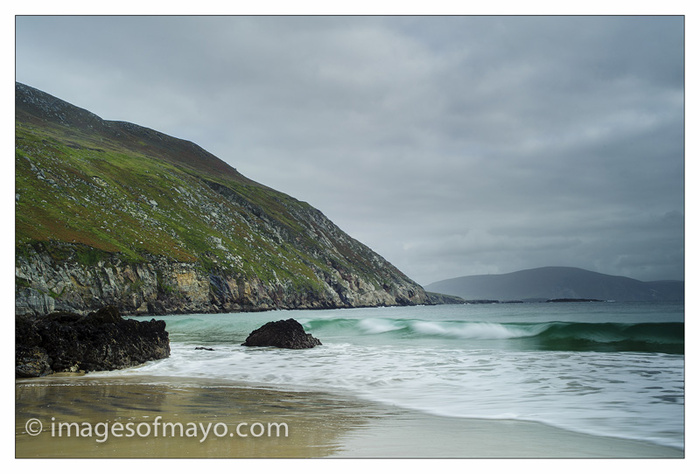 As I explained yesterday , today was spent with Karen on a "One to One " landscape photography training day. We were up early and all set up out on the Greenway above Mulranny waiting for the sunrise, but nobody told the sun and we did not see it at all! So back to the house for breakfast and showers then we headed towards Achill. It was very grey and overcast and on occasions raining, however we stopped several times before reaching our final destination , Keem Strand. And just as we arrived the sun finally broke through and we got a couple of hours of exciting photography. On return to Mulranny we spent several more hours using photoshop. Karen said she learnt a lot , but I think the most important lesson she learnt from me today was NEVER LEAVE YOUR CAMERA UNATTENDED ON A TRIPOD, AS IT IS LIKELY TO FALL OVER !! And just to make sure Karen really remembered this I did it , not once, but twice!! I was very lucky, apart from a filter holder taking a slight bend the camera and lens remained undamaged!