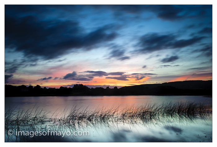 When taking landscape photographs, a lot of time is spent just waiting around. Like when this picture of Carrigeen Lough near Kiltimagh. I was there for the sunset but waiting for 40 minutes after the sun set meant a whole change in colour. I don't mind the waiting because I enjoy watching to see what might develop, but evening time beside water does mean an occasional attack by the dreaded midges, this was one of those occasions, and that despite using lots of anti midge preparations, they can always find the spot on your skin that you missed!