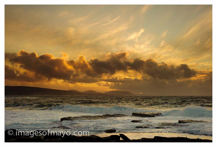 I am in Mulranny for a weekend of photography with Karen who has come from America for a photographic tour of the West of Ireland and is spending a couple of days with myself. I am praying for some good weather with some exciting light, it does not look too promising for tomorrow.This evening we took a trip to Achill to photograph the sunset, unfortunatly there was no sunset , but we were at Cloughmore about half an hour before the sunset and got some exciting light ,like in this picture.