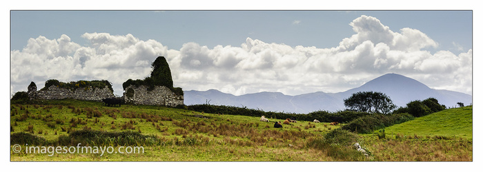 Here is a picture of a very old church at Burrishoole. Burrishoole is famous for it "Abbey", which I have recently learnt is technically a Friary not an Abbey. Anyway this church is located a couple of hundred yards away and predates the Friary. There are two churches in the picture! There is the obvious ruin but if you look carefully you can also see the church on the summit of Croagh patrick in the background.