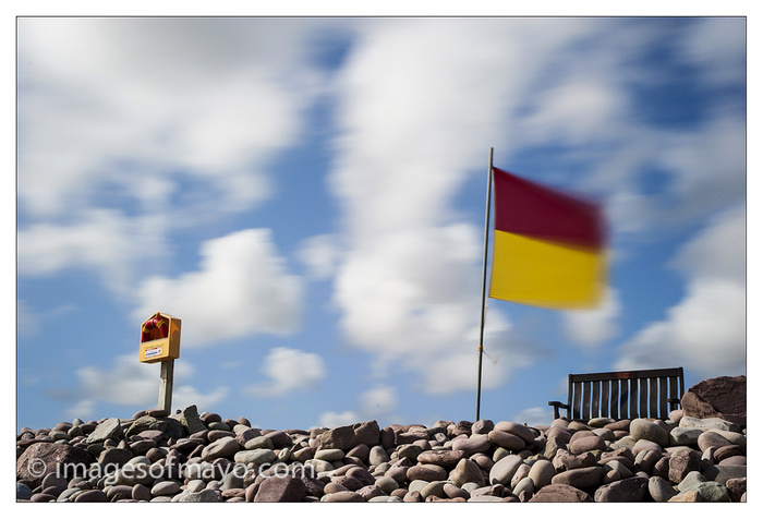 Here is something a little different tonight. This picture was taken on Mulranny Beach, it was the colours that first attracted me, I then thought I would try a long shutter speed to show movement in the flag and the clouds. It is a twenty second exposure.