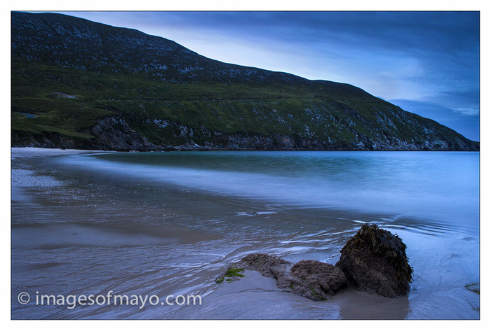 I am very late posting this evening, and indeed was very late taking todays photograph. I was on Achill for a book launch. Mary J Murphy was launching her book "Achill's Eva O Flaherty Forgotten Island Heroine" Mary had used one of my images for the front cover. I had hoped to get some pictures on Achill, and as we rushed to get to the venue on time (the launch was at 8.45pm) I decided I did not really have time before hand to take many pictures, but felt sure that with sunset at9.45 pm I might get a few shots afterwards.  Patricia of course told me not too rush as the launch would be on "Achill Time" but not wanting to be late I kept rushing and got to the venue just  on time.  The launch started an hour later and it was after 11pm when we left!.  The sun was long gone but we went up to Keem bay anyway and it was lovely in the dark. I decided to try to make a picture anyway, and its amazing what modern digital cameras are capable of. This shot almost looks like daylight. the camera settings were 30seconds @f5.6  and iso800!  It won't win any prizes, but I still think its amazing as I could not see this with my eyes.