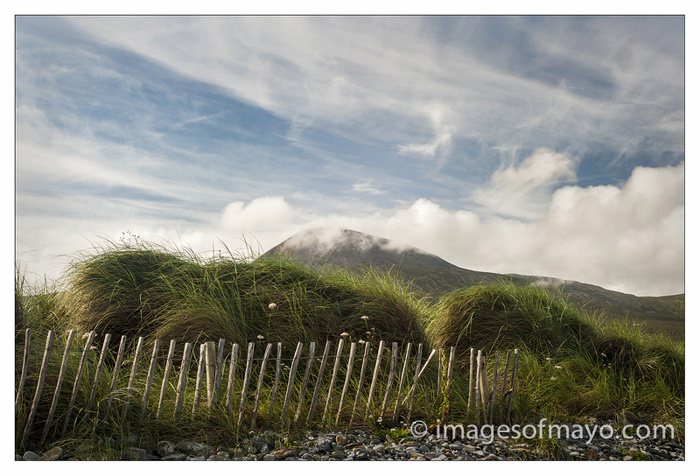 It seems like a long time since I posted a picture of Croagh patrick. here is an unusual view of the holy mountain, taken from Bertra Beach.