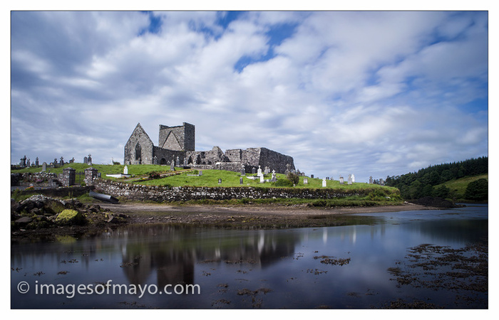Returned from Mulranny this morning but on the journey home we stopped at Burrishoole Abbey, just as we arrived the sun broke through the cloud, the tide was low so I was able to cross the little stream to include the water in the picture.