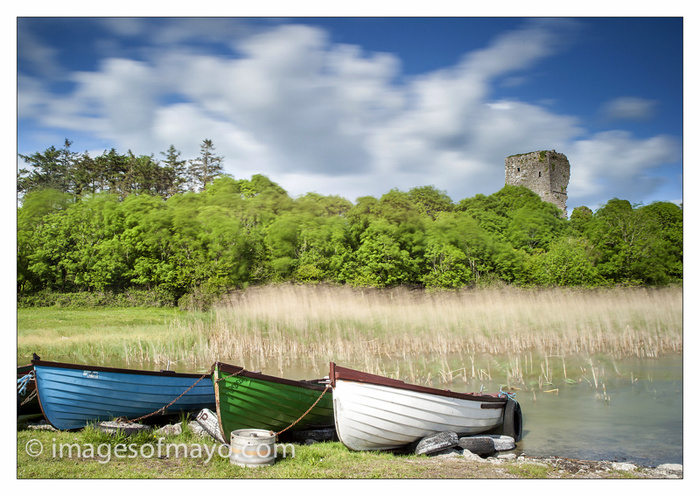 This picture of Castle Bourke on Lough Carra was taken on a very windy day. I tried to show the wind by using a very slow shutter speed of 15seconds, this allows the clouds and the trees to move and blur. It only works however because the boats and the castle are stationary .