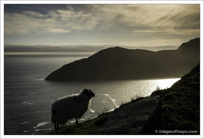 We had a glorious sunny day in Mayo, I spent the afternoon and evening gardening, now its a VERY small garden , which has not been tended since last year so Patricia and I spent all afternoon, digging and pulling weeds, it still needs a lot of work but we both felt good after our day. Despite the lovely evening I chose to sit back and open a bottle of wine rather then seek a sunset. I felt just a little guilty that I might be letting a sunset escape me , you know each one is an original never to be seen again. The choice was made easier though knowing I had a couple of pictures from Saturday's trip to Achill to fall back on. But now that I have gone looking for the picture I almost feel guilty again , because even the sheep on Achill take time out to admire the sunset!!