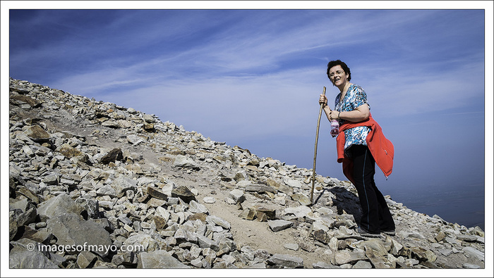 Another fantastic day in Westport at the Westport Coast Hotel. After breakfast this morning we thought we mightt go to Clare Island for the day but realised we would not get to the ferry on time so Trish sugested we might climb Croagh Patrick instead ! Now Trish has never climbed it before, and it is five years since the last time I did. Now I don't usually post personal pictures ( though now that I say it, I realise that All my pictures are personal! ) But I thought I would like to share this picture of Trish , still looking remarkably fresh as she reached the summit! It took us a full 5 hours to go up and down! The journey was shortened a little by the company we met along the way, a Noel O Donavon from my home town of Clonakilty in West Cork!