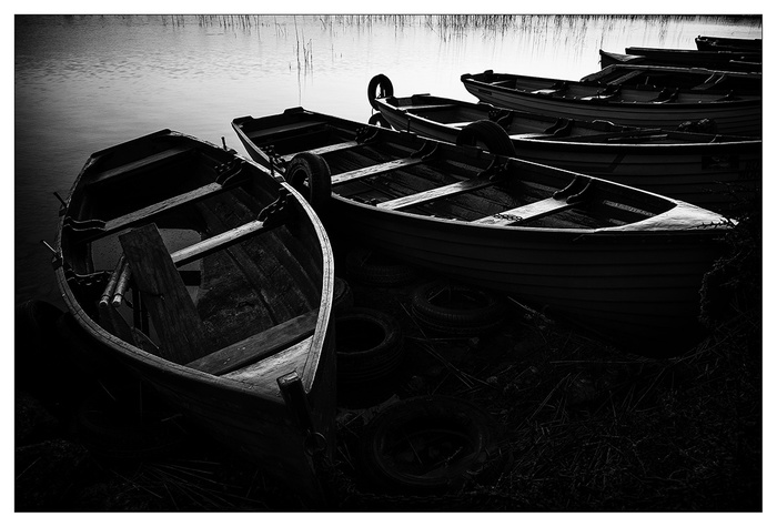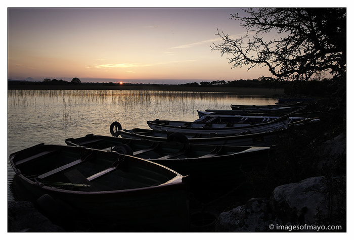 A little early posting this evening as I am about to leave on an overnight trip to Cork, its pretty dull and I don't expect I'll get any pictures between here and there. This is another image from my quick visit to the shores of Lough Carra yesterday evening, i converted to Monochrome, because sometimes when we view a picture in Monchrome the shapes and textures in the image become more important, and for me this was all about the shapes, accentuated by the back lighting skimming across the top of the boats.