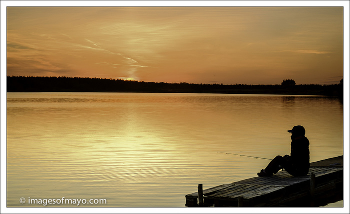 Yesterday evening I had to be in Claremorris just after sunset so left the house a couple of minutes early in the hopes of catching the sunset at a small lake just outside the time.Sunset waits for no man and just as I got to the lake the sun disappeared, I really did not have time to stop anyway but there was a young lady fishing which meant I only had to step out of the car and take a couple of exposures and I knew I had a picture. what a lovely way to spend an evening sitting fishing, and watching the sun go down, it reminds me of my youth!