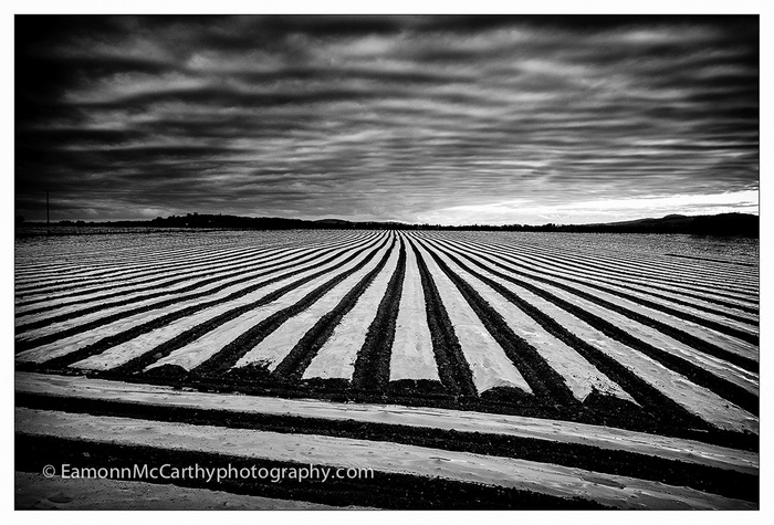 Very late posting this evening,but I am not long back from Cork. I spent a lot of time driving today and did not expect to get any pictures , but I passed this field somewhere between Galway and Limerick and when I saw it I just had to stop. I have no idea what they were growing under the lines of polythene , but I thought the lines very interesting.