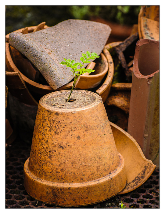 I spent most of the day gardening, trying to get the garden back into shape having deserted it for several weeks, its just amazing how quickly the weeds grow, and where, as can be seen in this photo taken down at Kylemore gardens the other day. there was a bench full of broken pots, used as crocks , and this baby ash tree had found a foothold!!