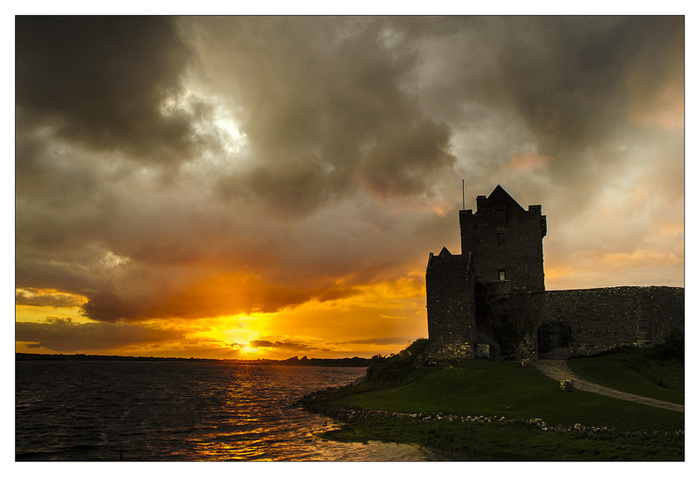 We left Mayo, still raining. The sun finally broke through about teeny minutes before sunset and we got to Kinvarra just on time to photograph it.
