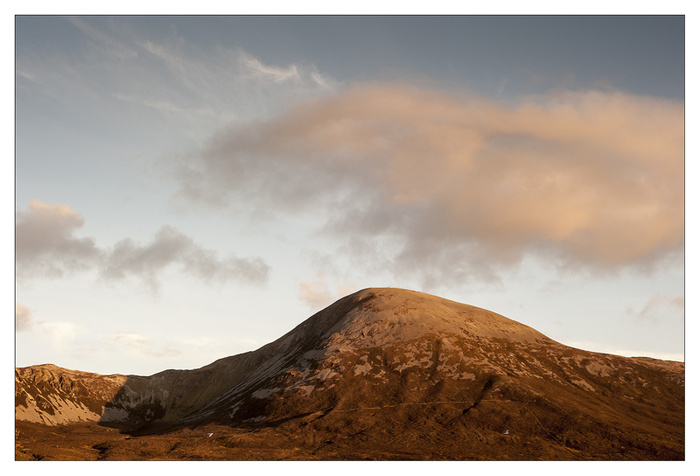 This picture of Croagh Patrick was taken from Bertra beach as the sun was setting behind me. The Sunset was a little disappointing but its warm light gave this scene a nice colour.