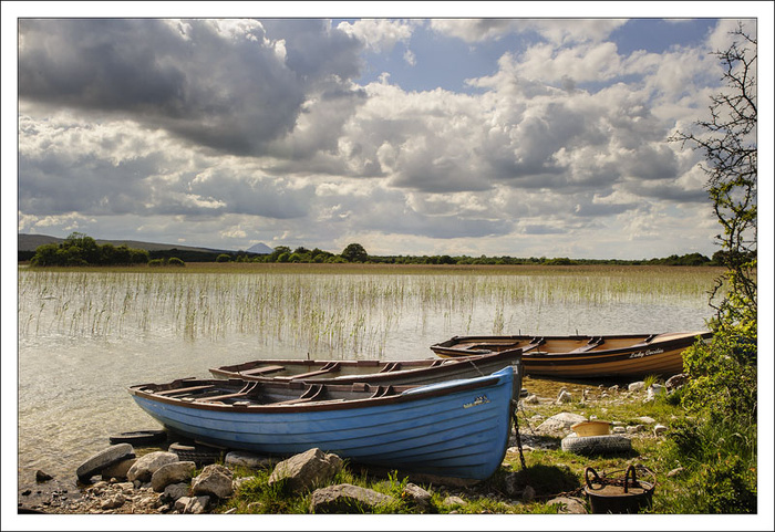 Lots of rain again today , so here is a picture taken during lasts week s sunny spell. these boats are moored on Lough Carra at Castle Bourke, Croagh Patrick can be seen in the distance.