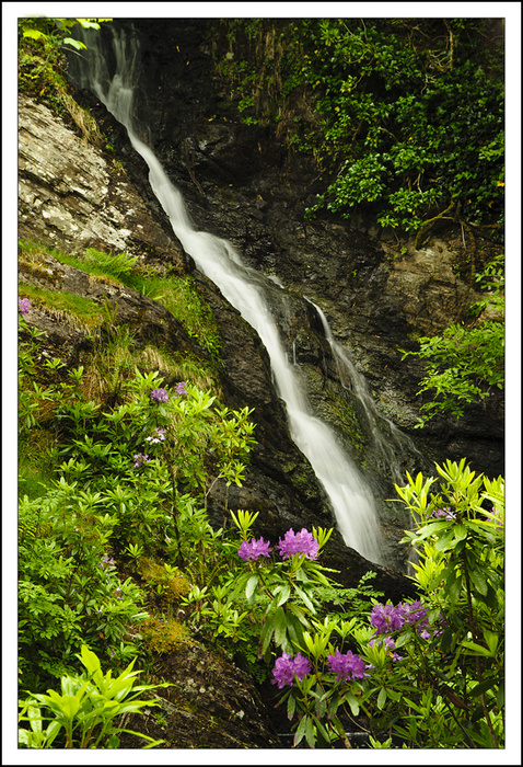 Here is another picture from Co Galway. This very pretty waterfall is situated at the side of the road quite close to Kylemore Abbey, I always stop for a photograph whenever I pass. I thought it looked particularly well with the rhododendron in flower. It looks almost tropical!