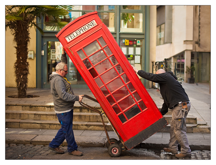 Here in the West of Ireland we often experience difficulties with our mobile phone coverage, as you can see from this picture taken this morning in Templebar the people of Dublin have solved the problem with this new British Model of Mobile phone..... I wonder if it will catch on?
