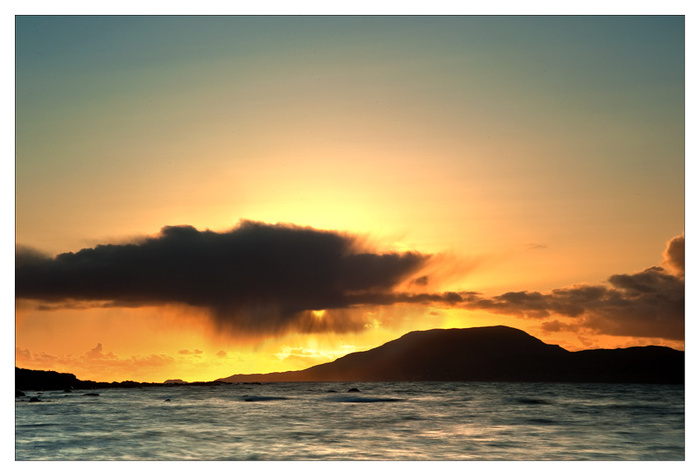 I am a little late posting this evening. This picture was taken about twenty minutes before sunset from Accony beach looking across to Clare Island. I was very hopeful when this was taken , that we would have a spectacular sunset. But this was as good as it got.