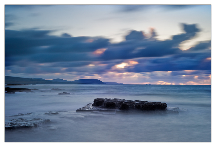 Yesterday I posted a picture of a dramatic sky just before sunset. Having taken that picture at Downpatrick Head I went onto the shore to prepare and compose the sunset picture. I decided to use the rock you can see as the foreground and a slow shutter speed to soften the water. All I needed was the sunset !! As you can see the sunset was hidden , its just amazing how quickly the light can change , these two pictures are about 10 minutes apart!