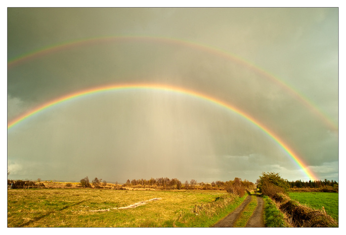 The Monsoon we were promised has not arrived yet, lets hope it passes us by. This picture of a double rainbow was taken in Kiltimagh about 2 weeks ago, its a shame I was not able to fit in both ends of the rainbow despite using a wide angle lens.