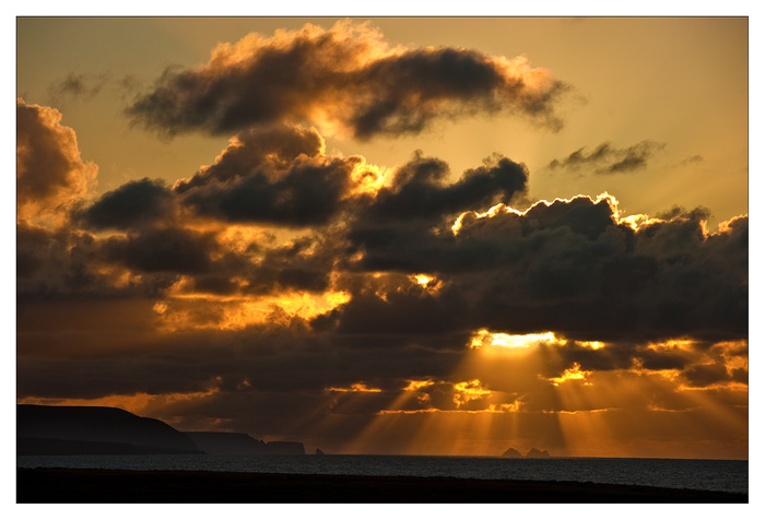 A couple of nights ago I went to Downpatrick Head to photograph the sunset. This was the scene that greeted me when I got there twenty minutes before sunset ! You can imagine how excited I was, seeing this from a distance and trying to get the car into a position where I could photograph without houses and telephone posts in my view. Twenty minutes later the sun was completely hidden for the sunset.