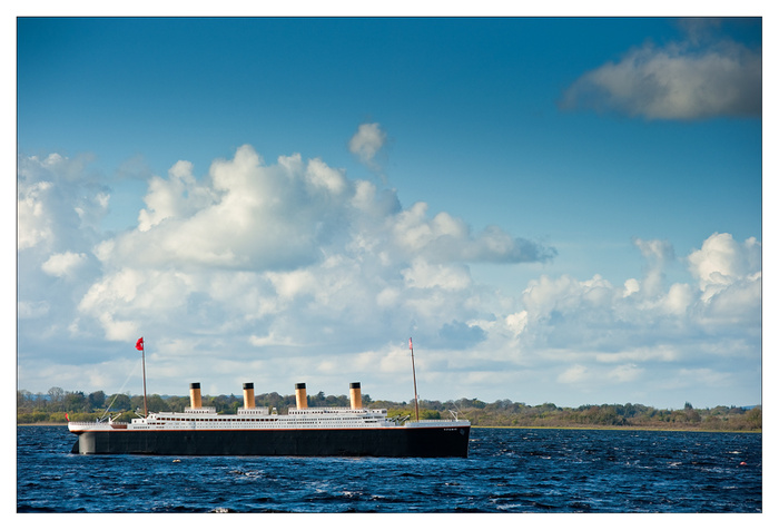 As you will be well aware from all the media coverage it is 100 years since the sinking of the Titanic . Mayo has a particular link to this tragic event and particularly the parish of Addergoole, Lahardane. 14 people from the parish set sail from Cobh on the great ship and only 3 survived. I had heard of a model that had been built locally and this afternoon was my first chance to go and see it, I am not going to get another chance for at least a week.I thought it may not be there in a week so I had better go today. I was really glad I did!. It is moored on Loch Conn just offshore from the Addergoole cemetery . I had seen some pictures but it is hard to judge the scale. But I must say that as you approach the cemetery you go over the brow of a hill and your first sighting of the "Titanic" on the Loch would really take your breath away. It seems like a fitting tribute and a credit to the volunteers who built it. You can learn more about the Addergoole 14 from the excellent "Mayo Link" facebook page