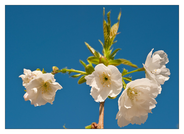 What a lovely day we had today! Hazy sun and blue skies, warmer then Greece and Malta! Here is a picture of the Cherry blossom in the garden, and look at that blue sky!