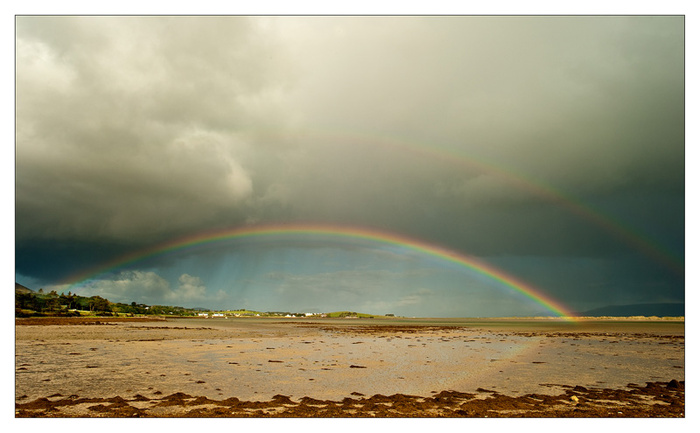 Here is an interesting picture taken at Murrisk, at the foot of Croagh Patrick a couple of months ago. The picture is of a rainbow, well ,there was actually a double rainbow you can only see part of the second one, but what I thing is interesting, given the symbolism of rainbows, is the way it looks like the rainbow is holding off the bad weather!! under the rainbow the sky is still blue!!