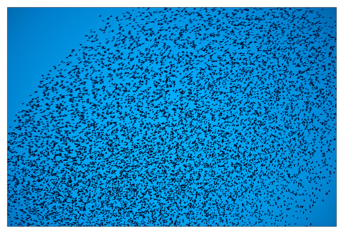 It rained all day today. So am posting another picture from yesterday. This picture shows a small section of the flock of starlings as they flew directly over me. They say a bird in the hand is worth two in a bush. I'm not sure how many birds in this frame!! If anybody has the time to count them, feel free to post the answer!!