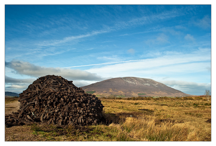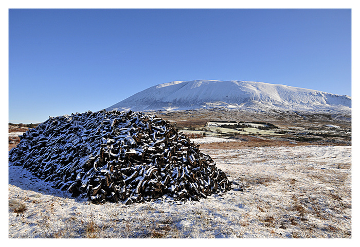 The weather forcasters are telling us that we are having the mildest weather in Europe. the price we have to pay however is more and more rain ! I got an email from my friend Rose , in malta today who told me that it had rained ALL day in Malta, it seems to have rained ALL MONTH here! So I am posting a picture taken in February 2010 to show what February should look like! The picture shows a reek of turf with nephin in the background