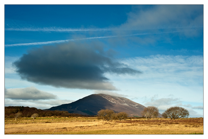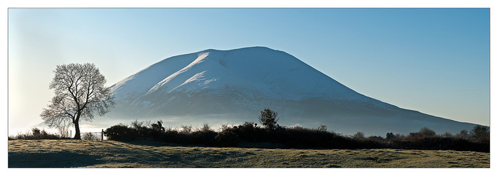 Another grey day in Mayo, we did not see the sun at all today. still there's more to photography then just taking picture!! I spent much of the day preparing images for print and making cards ! I also processed a couple of pictures taken some time ago that had never been looked at since ! The picture I am posting this evening was taken in Crossmolina a year ago! It is a panorama , made up of eight individual pictures stitched together to make the one image, printed to its "normal size" it would be nearly one and a half metres long! And shows Nephin Mountain.