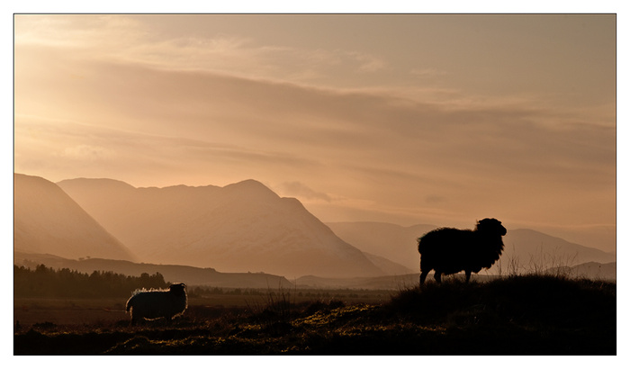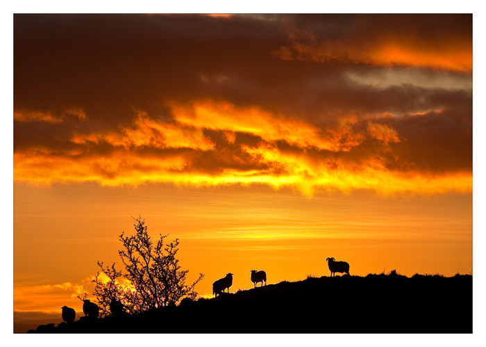 It seems like ages since the sun put in a proper appearance here in Mayo! It was a cloudy day but just at sunset time the clouds cleared and a good sunset started developing, and so I rushed out to get a picture. I had left it a bit late and did not really know where I was going when I suddenly noticed these sheep who also seemed to be enjoying the sunset. They were stood in a line on the brow of the hill all facing the sun! I had time to park the car and dash back to get the picture but they never moved!!