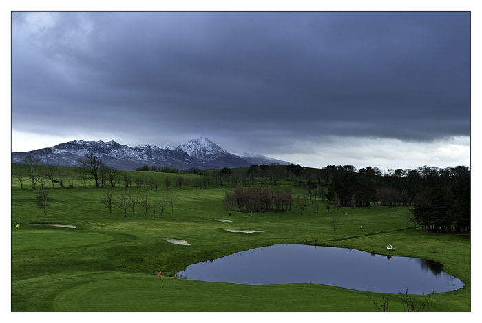I was in Westport a couple of days ago , and photographed Croagh Patrick with Westport Golf Course. As you can see it was very dark with the low cloud, there had been an attempt at snow on the mountain, all very different to this time last year when we could not move for snow!! Two of our four children couldn't get home for christmas because of it. So it won't be a white Christmas in Mayo and we are are busy preparing for the feast, the weather should not keep anybody away!!