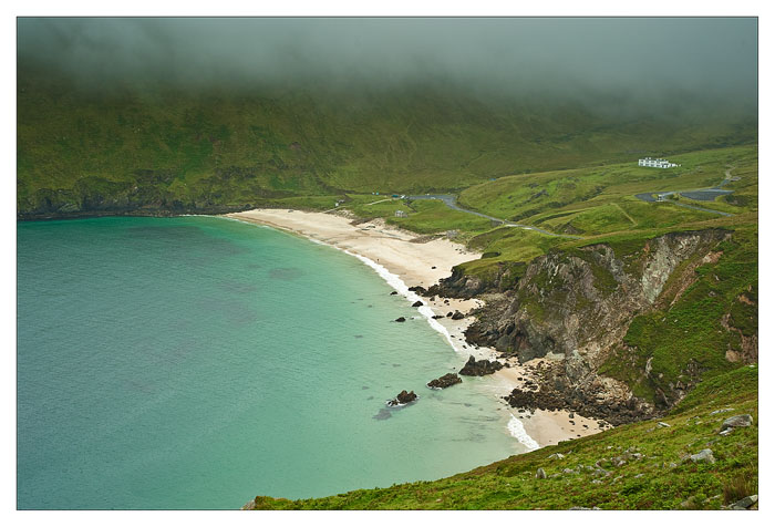 What's another year ? Its two years today since I started posting a daily picture on my website, I started a little later on Facebook. On both of the last new years I posted pictures of snow ! Well there is no snow this year, just plenty of rain. Here is a picture of Keem Bay,on Achil Island in the rain!