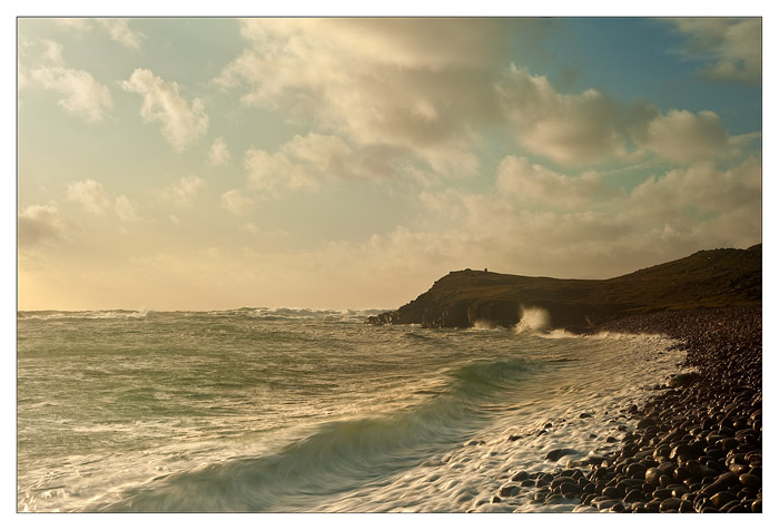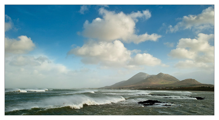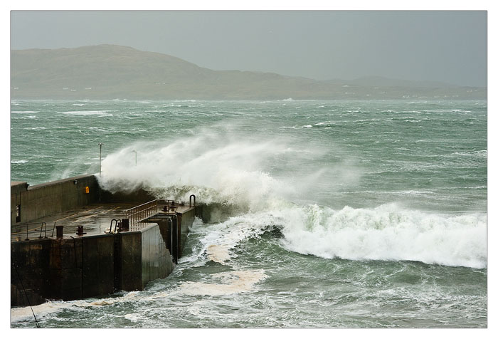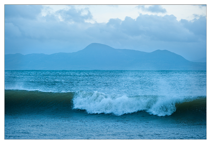 Todays picture was taken a few weeks ago on Achill Island. Often with these pictures its all a question of timing.To get the curl of the wave in just the right place. The camera is on a tripod and you have to watch the waves for a while to find their rhythm. So I was happy I pressed the shutter at just the right moment for this shot, but there is often a second part to the timing that also has to be got right, and on this occasion I got it completely wrong ! Its called the Bail Out. Its the time between pressing the shutter to capture the wave, the shutter closing and the photographer grabbing the camera and tripod and moving away from the oncoming wave ! I did manage to shield the camera, but took a soaking myself, fortunately it was very windy so I dried out quickly.