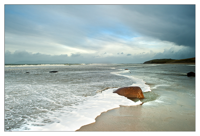 The winter weather is really beginning to set in! Hard frost and icy roads here in Mayo. Todays picture is of Carramore strand,again taken on a very windy day in this picture you can see the water coming in from the right hand side of the picture but is then being blown up the beach, too windy for a tripod the picture was taken handheld.