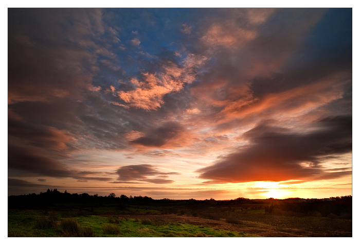 Dont you just love when a plan comes together? The forecast for the next few days is very poor it seems we are due a lot of rain, but its due to arrive late morning and last at least 24hours. assuming the forecast to be correct decided last night that I should get out early and attempt to photograph the sunrise , and I was very fortunate with the display of the sun and the clouds , here is one of the pictures taken in Kiltimagh this morning.