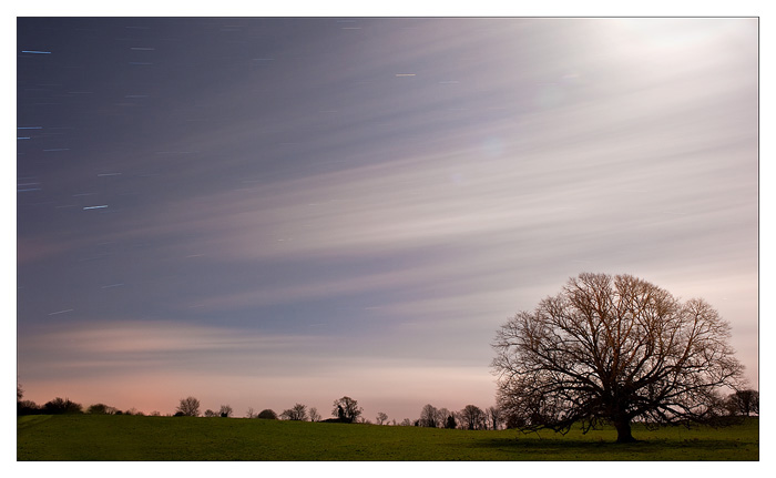 Well here is something a little different! I decided yesterday to try and take some night time pictures. This picture is taken at 10.30 pm , thats 6 hours after sunset. The "light" is provided by that big reflector in the the sky, the moon. This picture was only the test shot the camera shutter was open for over 8 minutes, this has resulted in plenty of movement from the clouds and small streaks from the movement of the stars across the sky . So I was delighted with this test shot and reset the camera for a 45minute exposure which would really show the star trails but it rained approx every 15 minutes, so I never got the picture and at 11.45pm I decided to go home. but I am excited by the knowledge that I can make landscape photographs 24 hours per day !!