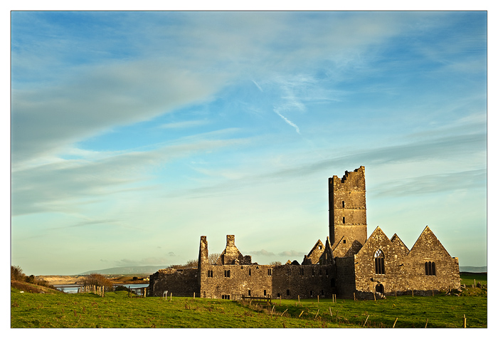 The monks were great at choosing sites for their monasteries ! This is Rosserk Abbey, photographed on Monday evening. I was delighted because I had planned the photograph and knew I had to be there at 3.30pm to get the tide and the sun in the right place. Sunset was due at 5pm so I thought anytime between 3.30and 4.30 would be fine. I nearly delayed at another location but decided not to. Anyway I reached Rosserk at 3.30 but found that the sun was going to set behind a small hill ,I had not allowed for this in my calculations. So I had to clamber across the shoreline to get to my spot, giving me about ten minutes before the sun disappeared behind the little hill!