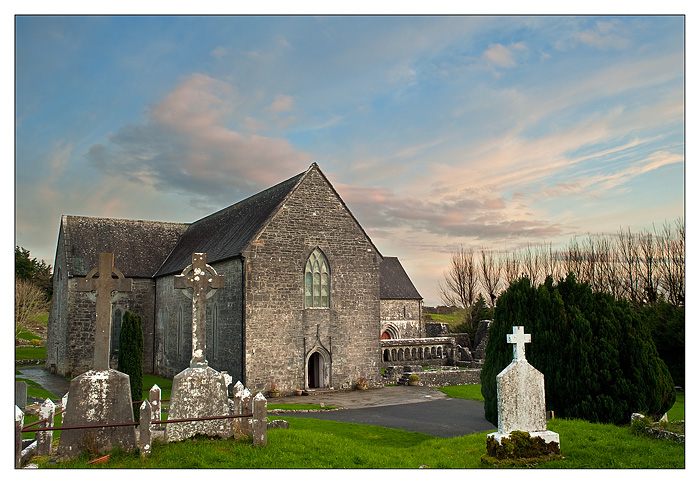 I have another abbey for you today. I took this photograph of Ballintubber Abbey yesterday evening. Ballintubber is probably the most famous of Mayo's Abbeys, because it has remained a place of worship since it was founded in 1216, this despite several attempts to destroy it. It is a very popular place for weddings.