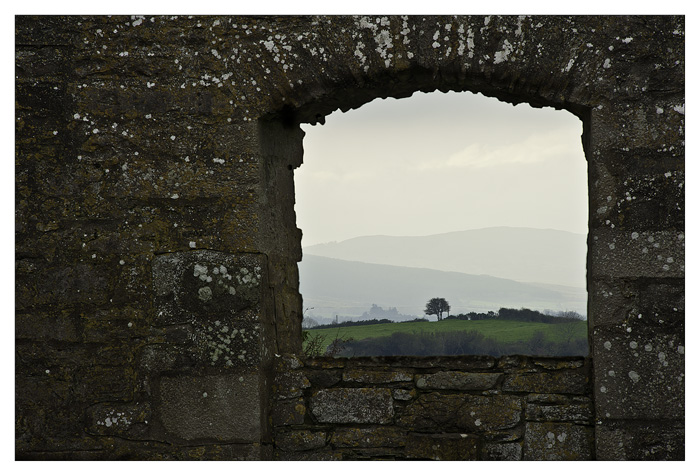 Yesterday I was in Errew Abbey near Crossmolina, it was my first time visiting and its an interesting abbey, if not as spectacular as some of the others. I had packed up the tripod and put the camera in the camera bag when I looked up to make my way to the entrance when I saw this picture, beautifully framed in the main entrance (I know it looks like a window,but it in fact a half blocked entrance . So out with the camera and tripod again !!!!
