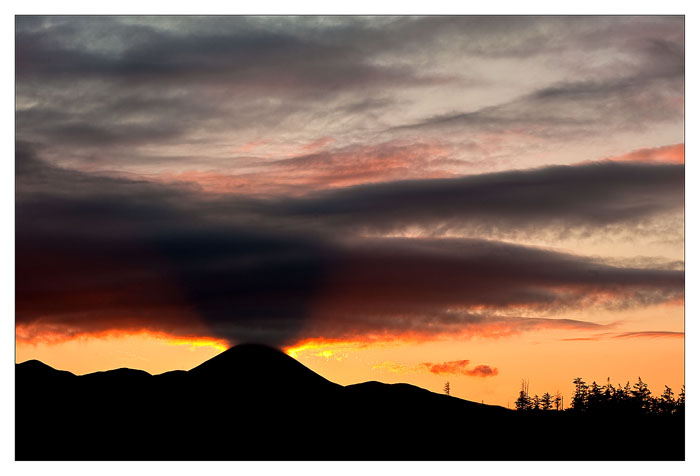 Another cloudy day here, I was going to photograph the sunrise, but the sun didn't appear, the sun has just broken through for the first time a few minutes ago so maybe things are improving. Todays picture is of a "sunset " behind Croagh Patrick.