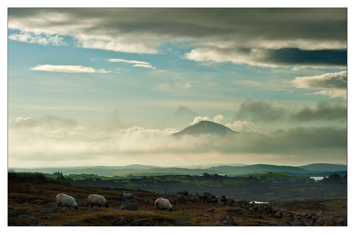 Its a lovely morning in Mayo, bright sunshine and lifting fog. This picture , taken on a similar kind of day, was taken near lough Fiach, I love the way Croagh Patrick seems almost suspended !
