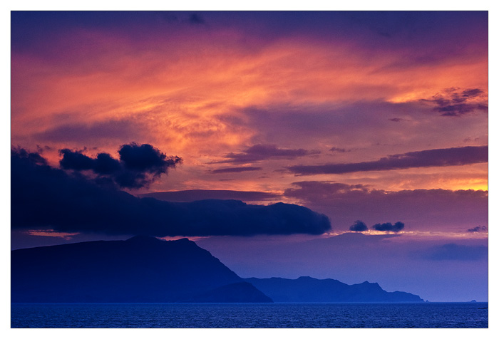 Yesterday I was telling you about washing my face at St Deirbhile's well. As I did, there was a small piece of colour in the sky over Achill Island. So I waiting around for about fifteen minutes and the colours developed , the whole thing lasted about ten minutes, but this was the view from St Deirbhile's well.