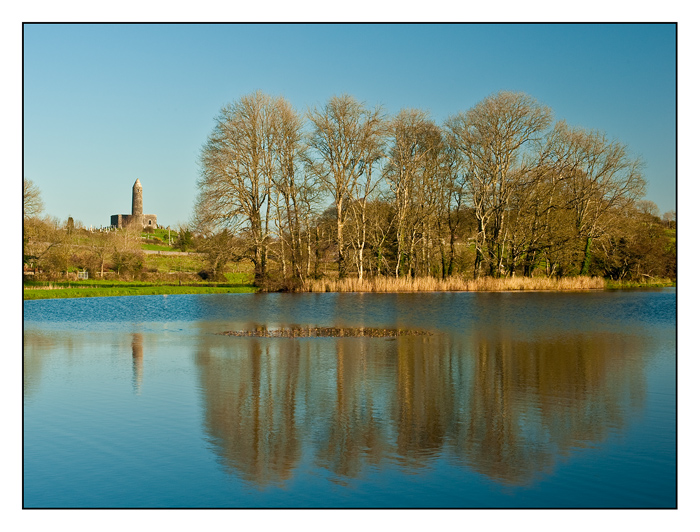 I am not a great fan of plain blue skies, I was out early this morning and it was a beautiful morning, but I do like to have a few clouds in the sky!! Even though I posted a picture of a reflection a few days ago I was passing the same lough just outside Kilkelly this morning and there was a perfect reflection so I stopped. In the few minutes it took me to set up the camera and compose the picture the temperature rose enough to allow a very slight breeze to come across the lough and the reflections were gone ! I did get a tiny cloud though!!